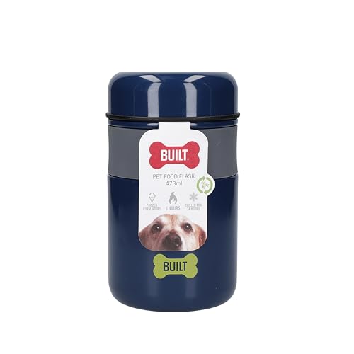 BUILT PET Matförvaringsburk, djurmatbehållare i rostfritt stål, resevänlig bärbar våt- eller torrmatbärare med lock, lufttät och isolerad varm eller kall flaska, BPA-fri, 473 ml kapacitet, blå