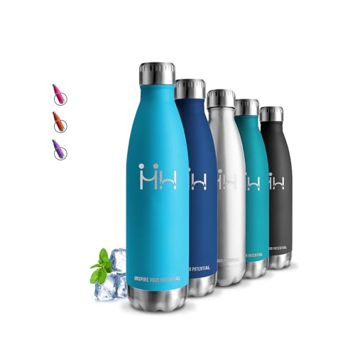 TIROBA Vattenflaska i rostfritt stål, 500 ml, vakuumisolerad, läckagesäker termos flaska, isolerad flaska, BPA-fri, 24 timmar kall och 12 timmar varm glansig havsblå