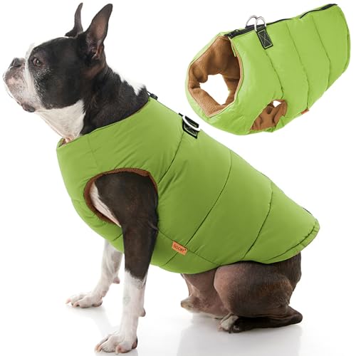 Gooby Vadderad väst, hundjacka, varm vattentålig fleecejacka med dragkedja med dubbelt D-ringkoppel, för små till medelstora hundar, enfärgad grön, storlek S