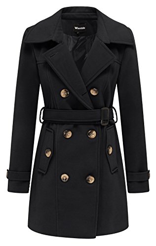 Wantdo Dam dubbelbröstad varm kappa elegant varm trenchcoat halvlång trenchcoat blandning ärtrock stil bröst varm kappa svart 38