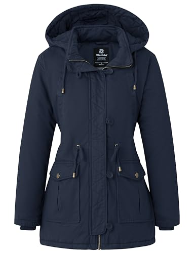Wantdo Dam vinter ledig parkas kappa utomhusjacka varm bomull vadderad kappa vindtät ytterkläder jacka, Marinblått Xsp, L