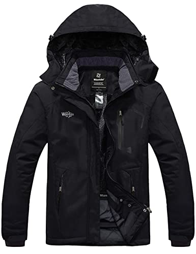 Wantdo Dam, berg, skidjacka, varm, vinter, fleece, kappa, vattentät, andas, regnrock, utomhus, huvor, vindjacka, jackor, svart, XL
