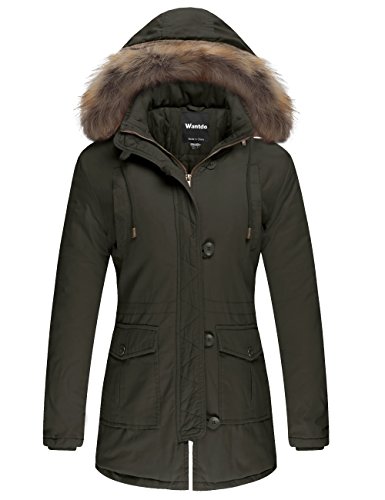 Wantdo Dam vinter ledig parkas kappa utomhusjacka varm bomull vadderad kappa vindtät ytterkläder jacka, Armégrönt, XL