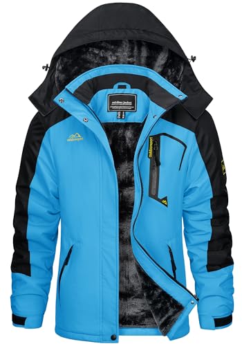KEFITEVD Vinterjacka dam, varm fodrad övergångsjacka, fleece, tjock skidjacka med avtagbar huva och fickor med dragkedja, vindtät, vinter, snowboardjacka, blå, XL