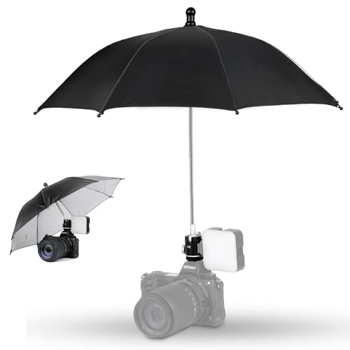 Kameraparly varm sko med 360° rotation bollhuvud och sidosko, bärbara väderbeständiga fotografiska paraplyer skyddar videokamera från regn snö solljus, levereras med vattentät dragskopåse