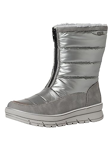 Jana Damer Softline 8-26476-41 bekväm multibredd bekväm sko vattenavvisande halkfri varm fodrad trendig känga med dragkedja fram, silver kamb, 41 EU, Silverkam, 41 EU Weit