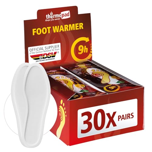 THERMOPAD 30 par sulvärmare (finns i 5 storlekar) - ORIGINALET: Box med 30 st med värmekuddar (innersula) för 8 timmars värme I fotvärmarskydd I extra varm värmesula L för skor & pjäxor