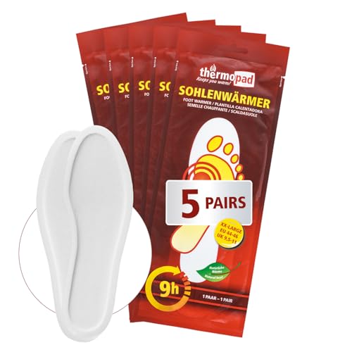 THERMOPAD 5 par sulvärmare (finns i 5 storlekar) - ORIGINALET: Box om 5 med värmekuddar (innersula) för 8 timmars värme I fotvärmarskydd I extra varm värmesula XXL för skor och pjäxor