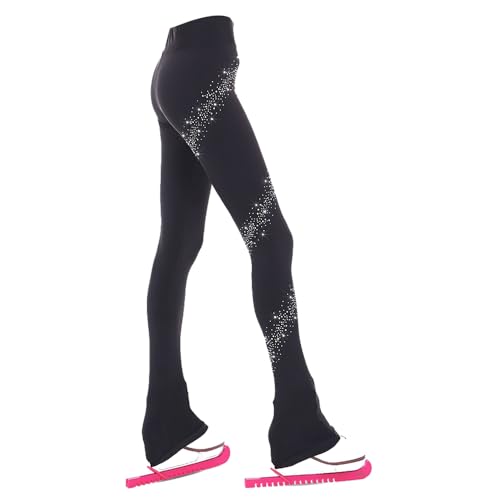 LIUHUO Kvinnor flickor is konståkning övning långa byxor premium varma tights byxor strass barn skridskoåkning leggings, Ljusblått, M