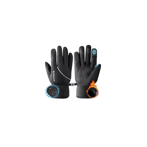 HIKENTURE vinterhandskar vattentäta, cykelhandskar män och kvinnor med polarfluff, varma vindtäta pekskärm cykelhandskar vinter, halkfria skidhandskar löparhandskar för utomhus L
