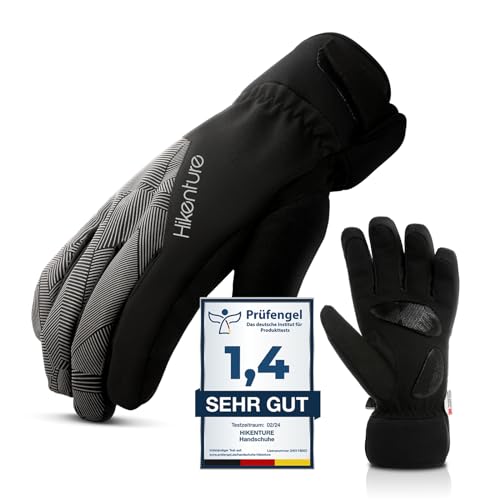 HIKENTURE vinterhandskar, vattentäta cykelhandskar vinter män damer, vindtäta skidhandskar cykelhandskar med långa gelvadderade män kvinnor, utomhushandskar-svart grå M