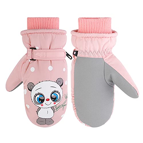 JUPSK Vinterskidhandskar för småbarn, vattentäta, snowboardvantar, halkfria, plyschfodrade varma panda-handskar för barn från 2–5 år, rosa