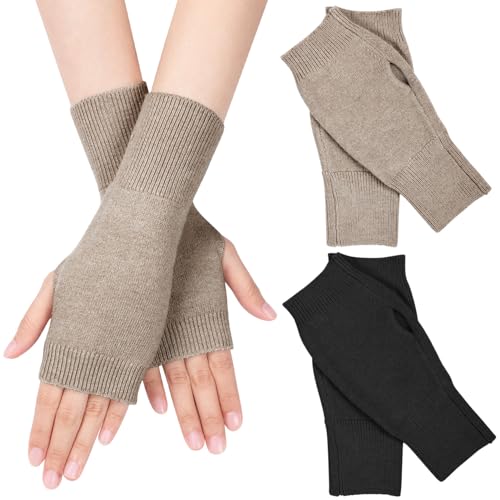 2 par unisex fingerlösa handskar halvfinger stretchiga stickade handskar förlängning handled handskar vinter varma handskar