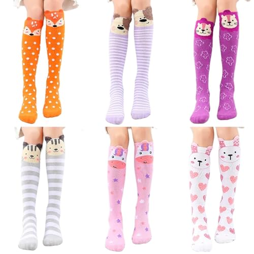 XEPST 6 Par Knästrumpor för Flickor - Färgglad Tecknad Design i Bomull, Varma Strumpor, Roliga för Skol och Udda Strumpor Dag - Julklappar för Flickor 3-12 År