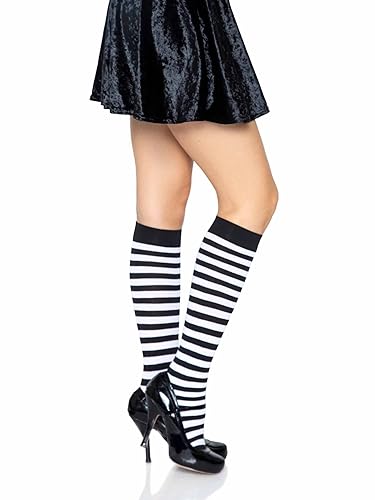 LEG AVENUE Damstrumpor med randiga ben varma knästrumpor, svart, vitt, One Size