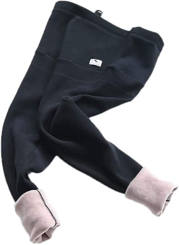 Kfnire Vinterleggings för flickor, varma leggings med varma och elastiska fleecefoder, Svart, 140-146