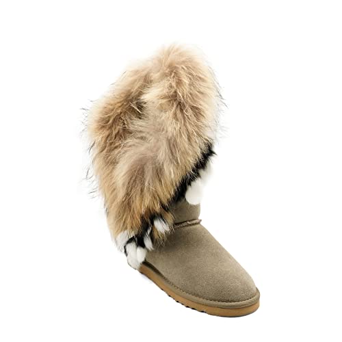 OOG Indianer läderstövlar, vinterstövlar för kallt väder för kvinnor, päls långa stövlar äkta läder skor vinterstövlar båt, vattentäta snöskor, komfort hela dagen, varma, 8020 Camel, 38 EU