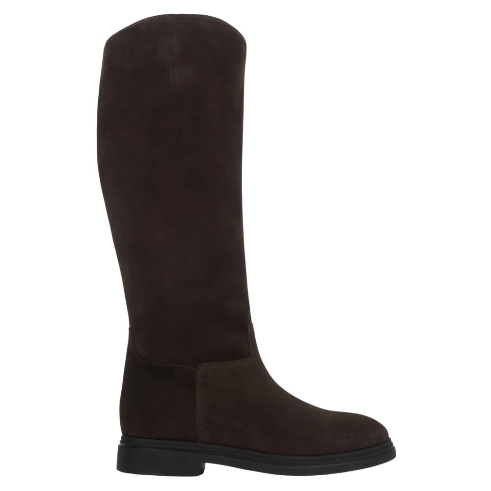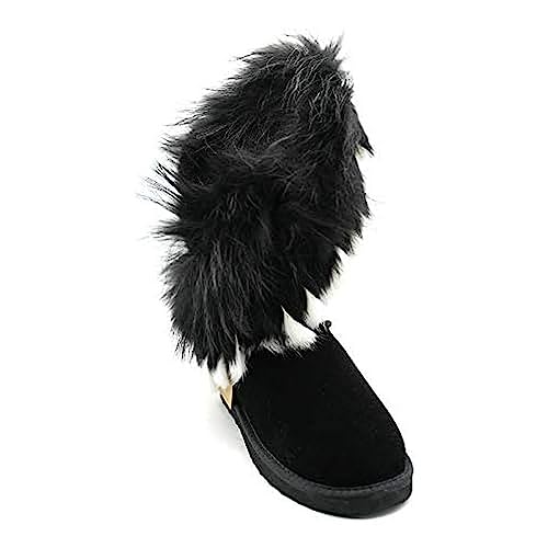ANUFER Dam varma vinterflufffoder knähöga stövlar elegant äkta läder svart platt häl dragkedja ridstövlar, Svart, 40 EU