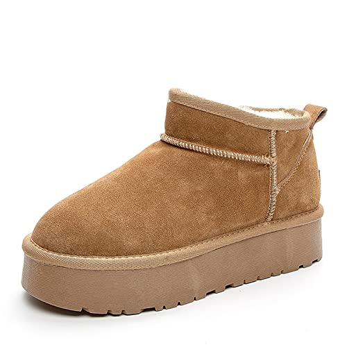 MCHDMI Stövlar Dam, Snöskor for kvinnor Modeplattform Platta skor Dam Varma Päls Vinterkängor Dam Vinter Casual Walking Skor (Color : Auburn, Size : 38 EU)