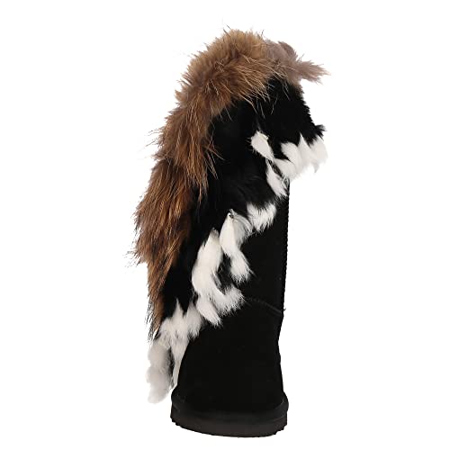OOG Indianer läderstövlar, vinterstövlar för kallt väder för kvinnor, päls långa stövlar äkta läder skor vinterstövlar båt, vattentäta snöskor, komfort hela dagen, varma, 8018black, 40 EU