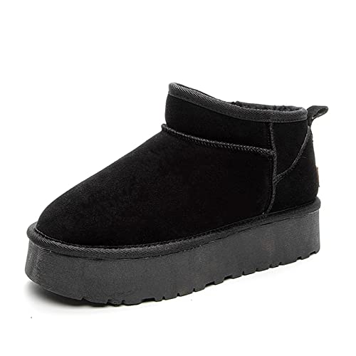 MCHDMI Stövlar Dam, Snöskor for kvinnor Modeplattform Platta skor Dam Varma Päls Vinterkängor Dam Vinter Casual Walking Skor (Color : Black, Size : 39 EU)