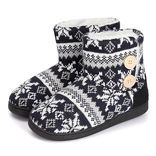 AONEGOLD Dam herr tofflor plysch fodrade tofflor vinter varma hattar stövlar bekväma fluffiga stickade halkfria hattar skor, blå, 44/45 EU