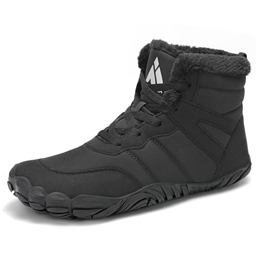 Barfotaskor vinter | vinter barfotaskor dam | vinter vattentäta barfotaskor för män | vattentäta snabbtorkande traillöparskor vandringsskor tåskor höga varma halkfria stövlar, svart, 45 EU