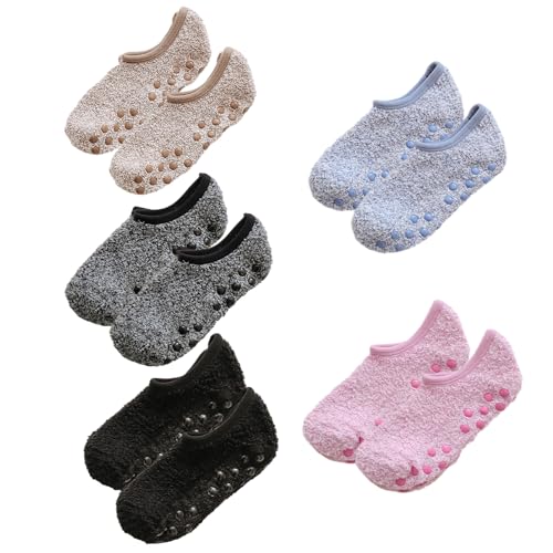 5 par korallfleece-golvstrumpor, varma vintertillbehör, förtjockade hemmastrumpor, fluffiga enfärgade strumpor, mjuka fritidsstrumpor, elastiska luktfria strumpor, unisex