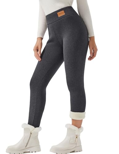 JK SUE JONES Kvinnor vinter varma tjocka leggings fleecefodrade stretchiga mjuka termiska sherpa byxor hög midja tights, Mörkgrått, S