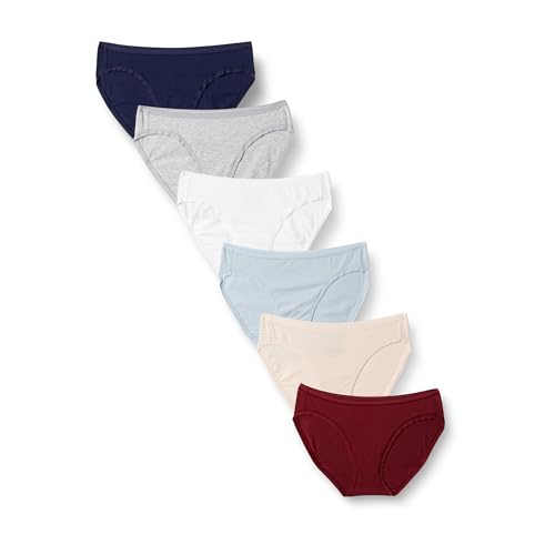 Amazon Essentials Women's Bikinitrosor underkläder i bomull (finns i plusstorlek), Pack of 6, Coola färger/Varma nyanser, M