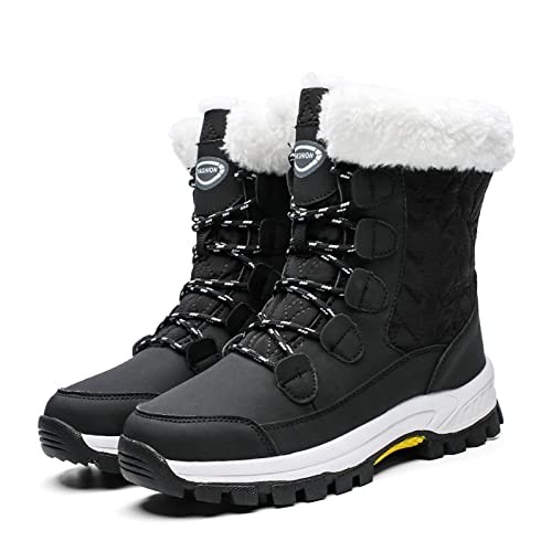 CERYTHRINA Snöstövlar damer varma fodrade vinterstövlar utomhus vattentäta vinterskor snö sneakers snörstövlar vandring stövlar, svart, 38 EU