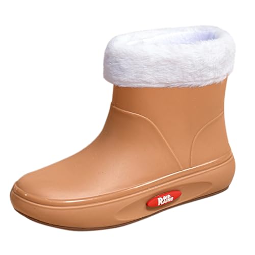 Regnstövlar dam fodrade korta gummistövlar vinterstövlar – varma halkfria regnskor gummiskor kockskor – utomhus kort skaft stövlar fiskestövlar trädgårdsskor regnstövlar för kvinnor, Braun1, 36 EU
