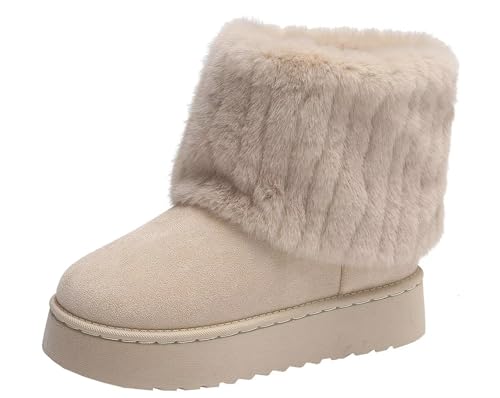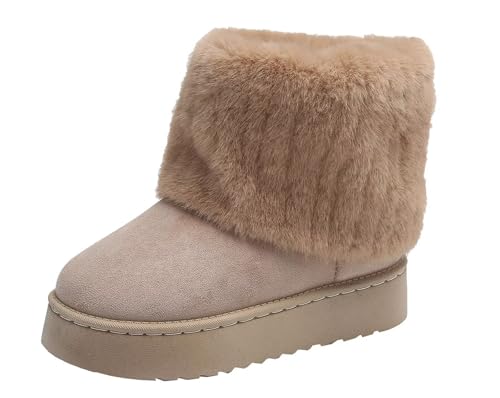 VALPEAKER Fluffiga fuskpäls-snöstövlar för kvinnor, lurviga varma vinterstövlar, mitten av vaden platta, Brun, 39 EU