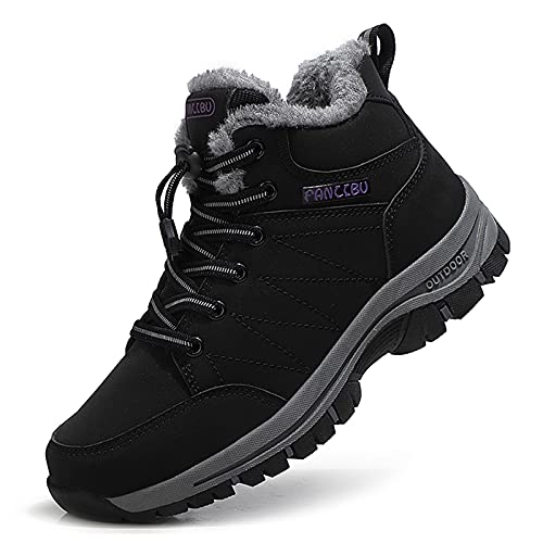 ZHNSHM Snöstövlar för kvinnor pälsfodrade halkfria vinterstövlar varma fodrade vandringsskor utomhus ankelstövlar, Svart, 39 EU