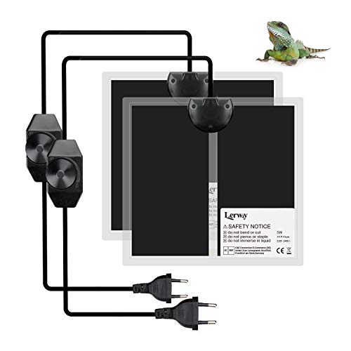 LERWAY Reptile Värmematta 2-packs, Terrarium Värmematta Varmare Matta Vivarium Vattentät Temperaturkontroll, Värmedyna Sällskapsdjur Värmare Termostat för Orm,Sköldpadda,Spindel,Gecko,Akvarium (2 Packs- 5W)