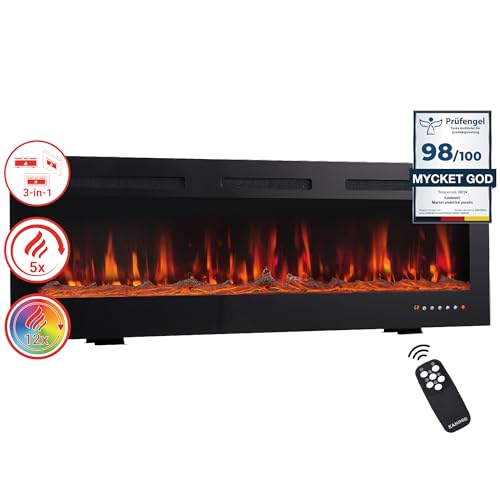 KAMINIO Elektrisk kamin LEA - Elektrisk 3-i-1 kamin med panoramautsikt, värme, 3D-flammeseffekt, 12 flammfärger, fjärrkontroll (50 tum)