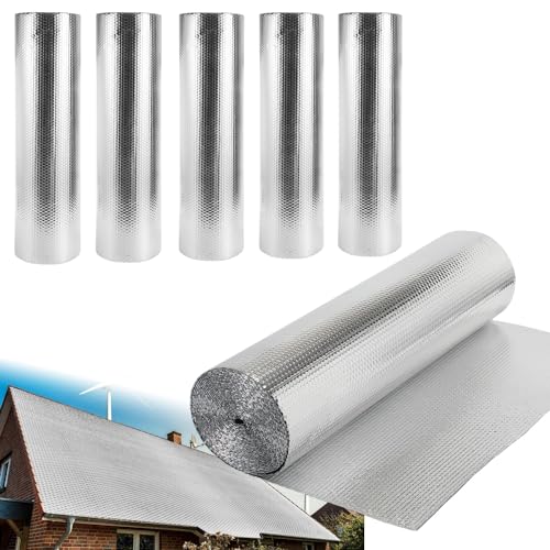 Ollewiellan Isoleringsfilm, 1 x 60 m, reflexfilm, värme, 60 ㎡, termofolie, aluminium-bubbelplast, isoleringsfilm, isolering för husbilar, förråd, garage, fönster, tak, växthus