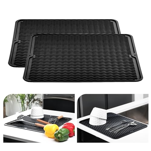 KitchenRaku 2 stycken droppmatta 40 x 45 cm, silikon värmebeständig, halkfri droppmatta diskbänk, diskmatta droppunderlägg, bordstablett (svart)