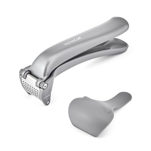 KitchenCraft Vitlökspress, lätt att rengöra, 360° öppning, kvarn och press för vitlöksklyftor, hållbar värmebeständig metall och silikon, köksredskap för matlagning och måltider, diskmaskinssäker