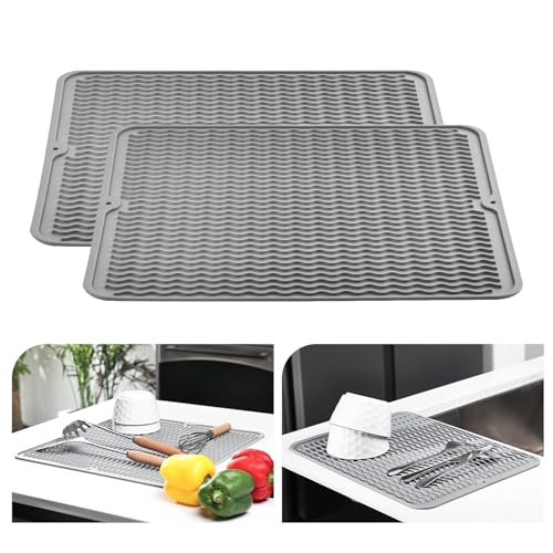 KitchenRaku 2 st. droppmatta 30 x 40 cm, silikon värmebeständig, halkfri droppmatta diskbänk, diskmatta droppunderlägg, bordstablett (ljusgrå)
