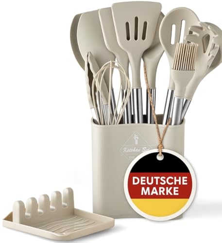 FlyHigh 13 st högkvalitativa köksredskap, 100 % BPA-fri, värmebeständig silikon, non-stick beläggning, silikonhandtag och hållare i rostfritt stål