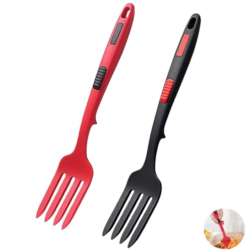 2 stycken silikongaffel för matlagning, non-stick blandningsgaffel, multifunktionell non-stick, värmebeständig silikon, kökspasta (röd, svart) 181 g