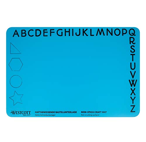 WESTCOTT pysselunderlägg I halksäker pyssel-matta I värmebeständig silikon I 304 x 454 mm I DIN A3 I flexibel I rullbar I blå I E-16815 00