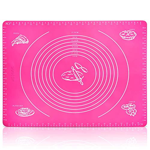 Belmalia Stor bakverk, bakning, värmebeständig rulle, silikon för din pizza, deg, fondant, kök 50 x 40 cm rosa