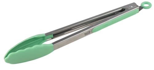 Tasty serveringstång i rostfritt stål 18/10 och värmebeständig silikon, 345 mm – perfekt för kött och grönsaker, grön, diskmaskinssäker