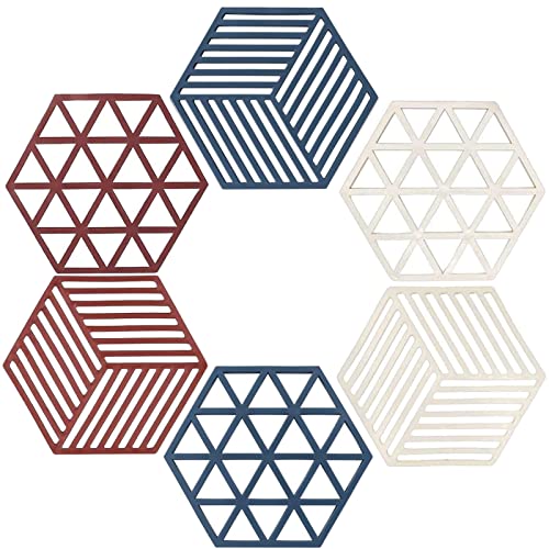 Bordsmatta och grytunderlägg i silikon – värmebeständig, multifunktionell, halkfri för varma rätter, krukor, pannor – skedstöd och underlägg för matlagning och matsal – set med 6