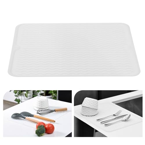 KitchenRaku Transparent Droppmatta 40 x 45 cm av Silikon, Värmebeständig Halkfri för Diskbänk, Diskmatta Droppunderlägg, Bordstablett