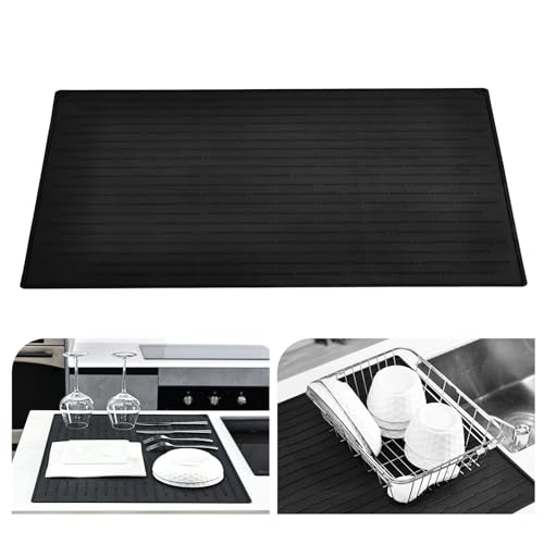 KitchenRaku droppmatta 71,3 x 51,3 cm, diskbänk av silikon, värmebeständig, halkfri droppmatta, diskbänk, droppunderlägg, bordstablett (svart)
