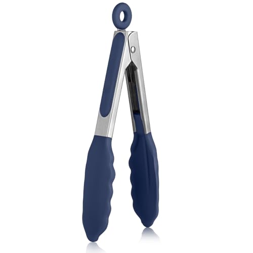 U-Taste Kökstång i silikon: Värmebeständig 250℃ med välförseglade non-stick gummispetsar och silikonbelagt stålhandtag och slät låsning (nattblå, 18 cm)