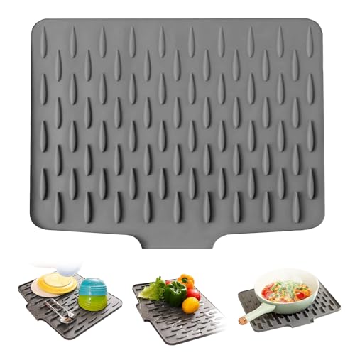 Diskmatta, 40 x 32 cm, läckagesäker bänkskiva skydd av värmebeständig, halkfri silikon, vikbar droppmatta med spårstruktur för bänkskivor, diskbänk (mörkgrå)